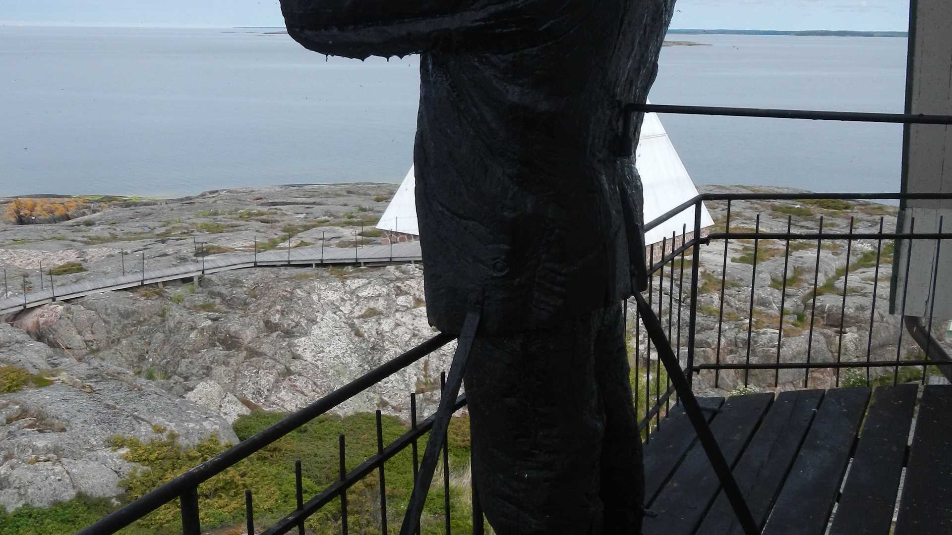 On our Zodiac cruise, we transited south down the now well-marked channel. We arrived at the small island of Kobbaklintar and docked at a small pier. We met a local resident who is working to restore the pilot’s house and outbuildings that were abandoned in 1972 when the pilots moved to Mariehamn. At its height, the pilots’ house would have supported a chief pilot, a few senior pilots, and several junior pilots, all waiting for the many ships that visited Mariehamn every day. Today the conditions were perfect, sunny, and clear; in the winter, the site can be whipped by the Baltic winds, or totally obscured by pea soup fog. After WWII, the pilots installed spar buoys along the sides of the channel. Originally made of wood and now replaced by steel channel markers, the buoys make the channel much easier to find. When the weather turns bad, however, pilots are still used and are mandatory for occasional visitors like National Geographic Explorer. Under the guidance of one of the local preservationists, Rune, we visited the pilot house and its gigantic foghorn.