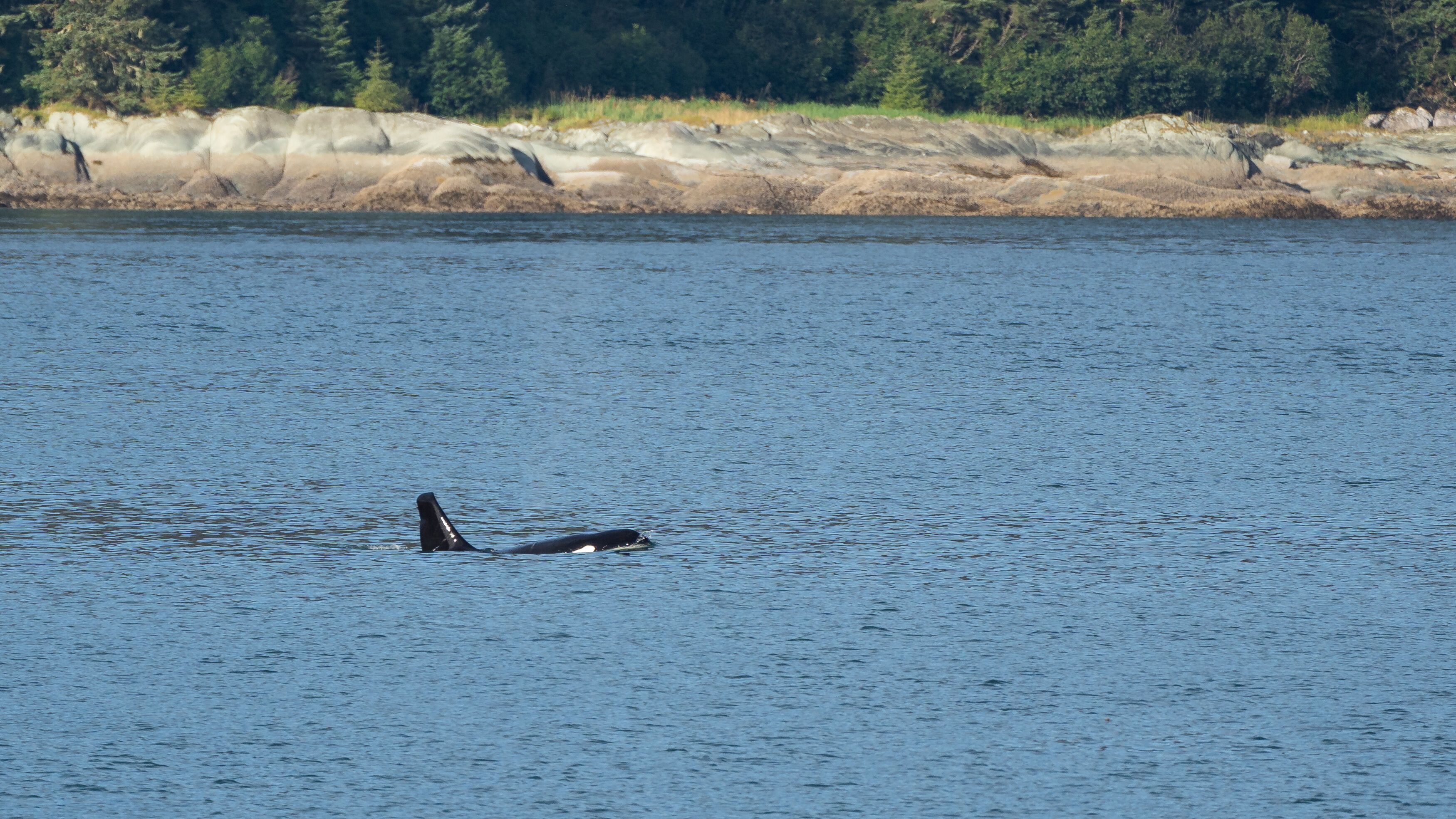The weather was excellent, but an even better surprise to start the day was a black bear that swam across the channel as we cruised in Rudyerd Bay. We watched as it finally came ashore on the other side, shook the excess water from its body and proceeded up the rock face of a landslide, snacking on some berries as it went.