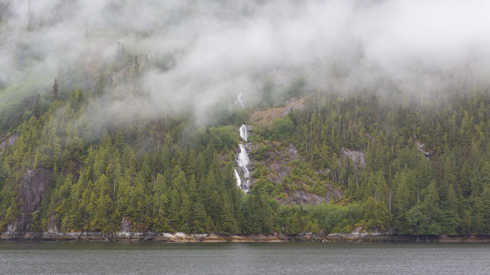 Today we woke up to the first rain of our trip, a light dose of “liquid sunshine” as our natural history staff often jokes. We were surrounded by spectacular scenery. Soaring walls of the fjord surrounded us, lined with tall green trees and calm seas. Many impressive waterfalls gushed down into the calm cove. Photographically speaking, this couldn’t have been a more perfect approach to the aptly named Misty Fjords National Monument.
