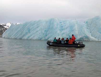 Due to the great weather—blue skies and no wind—we decided to launch kayak operations and Zodiac cruises. It is an impressive experience to paddle a kayak in between icebergs, bergy bits and growlers. We can only imagine the feeling the early travelers must have felt as they got trapped in ice as we easily navigate in our ice-enforced ship and bomber Zodiacs.