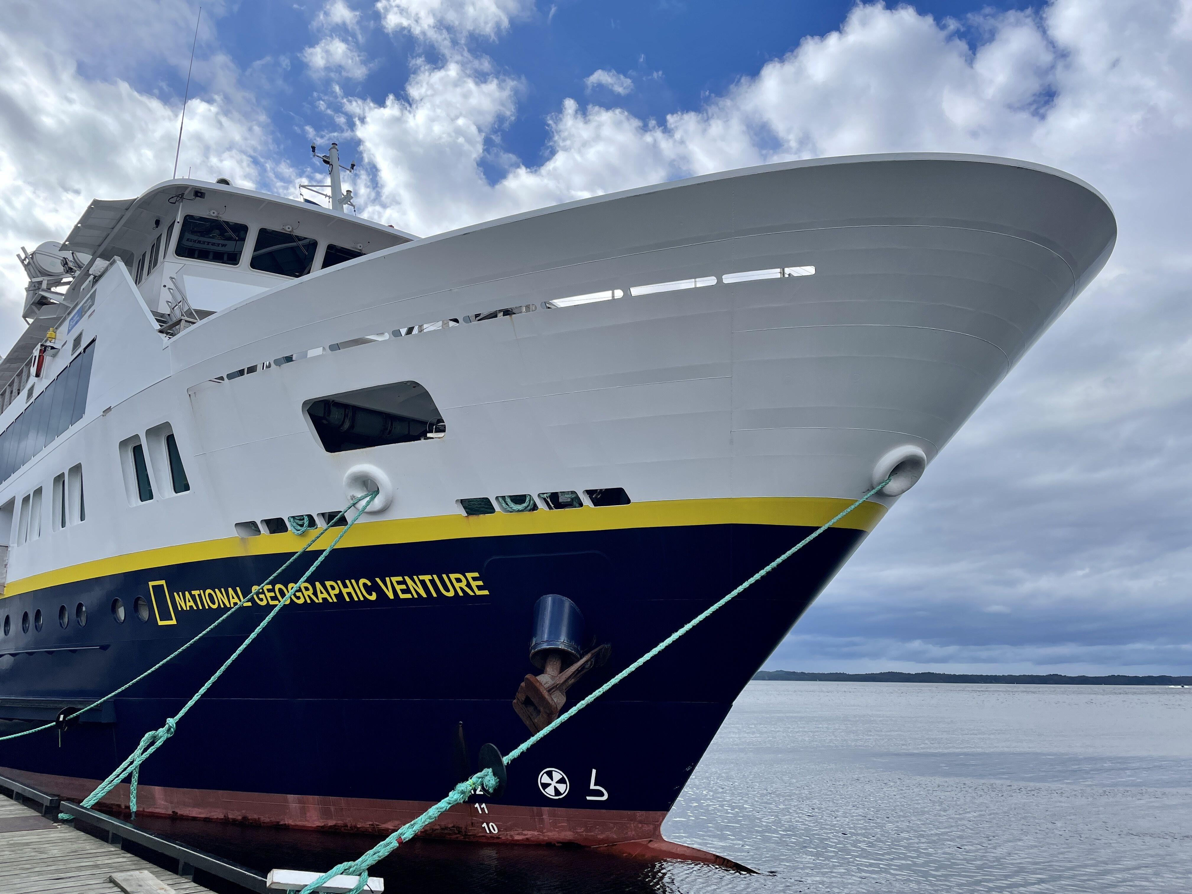 A line of giant air bubbles, nearly as large as basketballs, surface in a giant arc beside our ship. That arc slowly turns into a broad spiral, nearly closing into a circle as 70 people rush to the rail to look down at the spectacle. As cameras click, six giant heads emerge from the water, mouths agape. Tiny silver herring not trapped, flip one way and the other, narrowly escaping the trap.