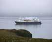 “Bubble netting whales!” came over the loud speaker at 06:20 this morning. What a way to start your day. We trundled up to the bow to find humpback whales plying the waters around our ship as we drifted through thick fog. We could hear the whales surfacing, breathing, and eventually we were able to get quick glimpses of them as the curtain of fog began to lift.