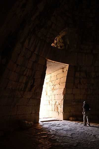 We dropped anchor in the bay of Naflion just beneath the imposing Venetian fortress whose elaborate, fortified walls covered much of the hillside. Our first stop of the day was the very important ancient Mycenaean city of Mycenae, the royal city of Homer’s Agamemnon. The name of the city is not Greek and suggests strongly that the first inhabitants, ca. 2000BC, came from Crete. The city was a powerful force in Peloponnese until 1200 BC when it was deserted. We first visited the massive corbelled grave, which is 13 meters across and 14 meters high—the largest such grave in all of Greece. The lintel stone at the entrance weighs 140 tons.