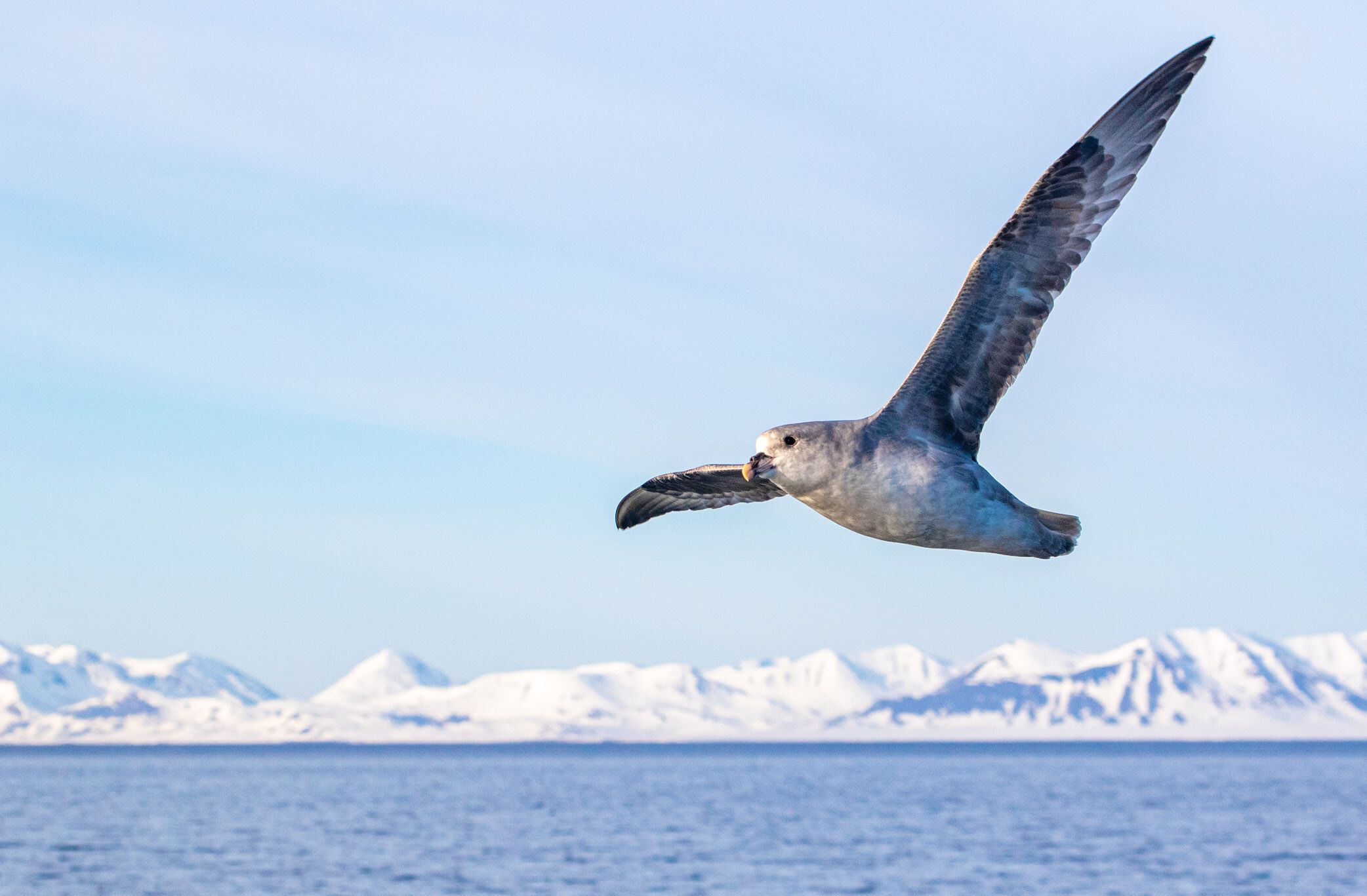 This morning, everyone still had vivid memories of last night’s sunny bear encounter. However, a new day started, and it promised new adventures. Before breakfast, our ship was positioned near Kapp Lee, where we planned a landing to stretch our legs for the first time on Svalbard soil. A scouting party went out and came back with a negative result. There was too much ice and deep snow on the landing. In expedition style, our plan quickly changed. The ship entered the spectacular channel of Freemansundet, located between Edgeoya and Barentsoya Islands. Soon after breakfast, naturalist Jackie Weston gave a presentation entitled “Introduction to Polar Bear Biology,” which helped us understand more about our observations last night.
