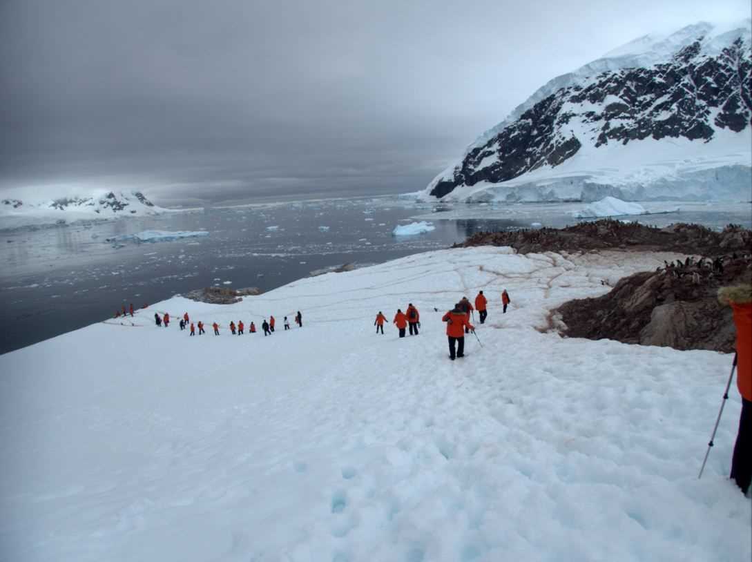In the afternoon, the ship sailed to the second landing site, Danco Island, where guests set their feet on Antarctic snow one last time. A steep hike to the top of the island offered a spectacular view all around.