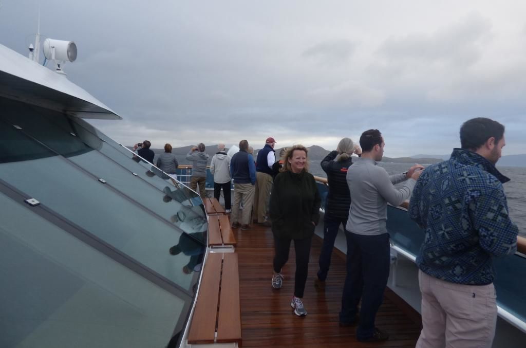 Until now, we have skirted the mercurial weather of the South Atlantic. Though the sun has been rare, we have been lucky with calm seas and easy access to some of the most exciting landing sights South Georgia and the Falklands have to offer. Today, as our trip nears its end, we had the opportunity to experience a small taste of the conditions that make this such a notorious region for seafarers and explorers. With sustained winds of up to 50 knots wrapping around Cape Horn, the ocean quickly began to churn. Our captain and bridge team found us shelter in the Beagle Channel where we spent the day appreciating the power of the ocean and the biodiversity of Tierra del Fuego. While onboard in the comfort of our new ship/home, National Geographic photographer Camille Seaman shared a collection of photographs she took throughout the last two weeks. Naturalists Madalena Pachaco and Bud Lenhausen shared stories of exploration and changing climates. Photo caption: The chart shows our way to protection from the storm in the Beagle Channel. Photo by Alex Krowiak