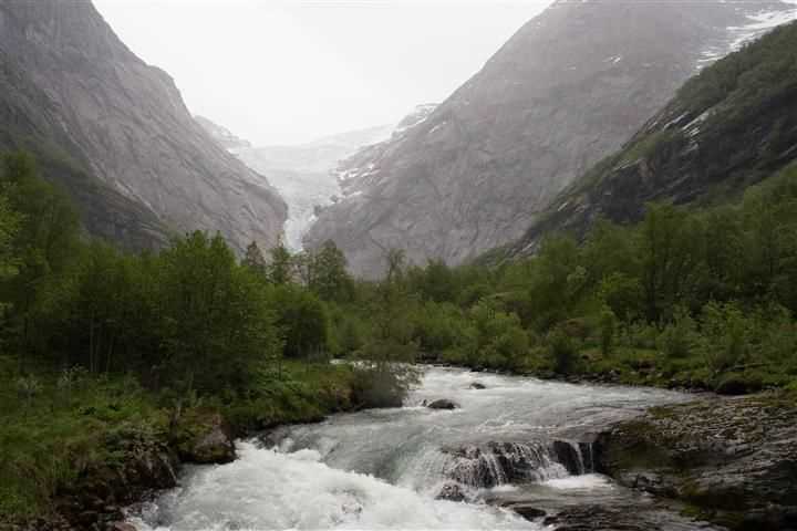 Briksdal and Kjenndal are two of the 50 arms of Jostedal Glacier, the largest glacier on the European mainland. Although it’s exceptional in scale, the glacier is retreating rapidly due to rising global temperatures. Signs of the arms receding, an indicator of this rapid decay, were clearly visible.