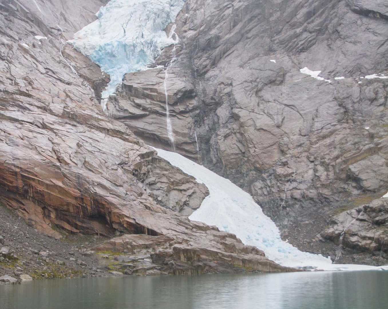Jostedalsbreen has a total area of 188 square miles, a length of a little more than 37 miles, and around 50 glacier arms. Our hike up to the glacier was very pleasant, especially with the surrounding mountains covered in snow and all the green vegetation.
