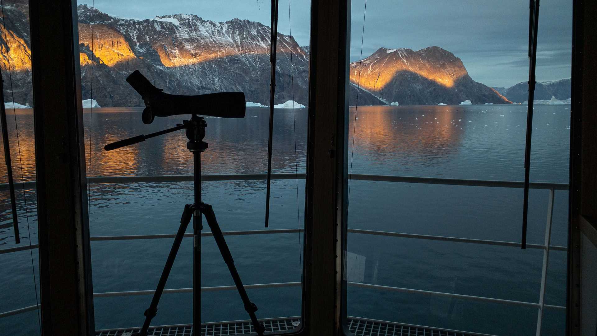 Today we awoke on National Geographic Endurance to beautiful pink skies and icebergs passing by the ship as we sat down for breakfast. We enjoyed a nice cruise into the furthest northwestern fjord of Scoresby Sund. Today was a lovely day filled with ice and dramatic scenery, making it hard to walk away from the window for even just a moment.