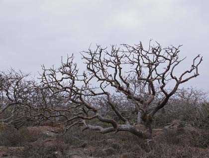 We are now on a sandy trail. We walk close to the black marine iguanas. They are so dark and black that their camouflage is like poetry and it is hard to see them on the dark rocks. But they are not only hiding, they are warming themselves. They are getting ready to feed as soon as the tides expose the food to be found in the tidal zone.