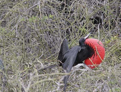 Early in the morning on Sunday, the National Geographic Endeavour happens to be anchored at a little island on the northern coast of Baltra, North Seymour, which embraces a large number of attractions. The explorers on board are ready after breakfast and excited since they know this is a very special place. It’s the first full day of our expedition and we cannot wait any longer. The Zodiacs are launched full of long and short-hikers. The long hikers disembark first on an overcast morning for a walk along a rocky path. The first thing they see are blue-footed boobies that are dancing for love while our explorers take pictures. Not too far from them are frigatebirds with their pouches inflated and their wings vibrating to get attention of a potential mate. We go along in our walk along dry vegetation where lava lizards and Galapagos doves walk freely, fearless and looking for the meal of the morning, and when the walk ends at the coast the sea lions and Galapagos land iguanas seems to be decorating the final walking section in this great place to be.
