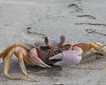 In the distance we found a male frigate bird with its pouch inflated. Next to this male we could distinguish other males, all of then making different sounds and moving their wings as the females flew above. Just one of them within the group has gotten a beautiful female that was carefully inspecting the place where the male has decided to make the nest.