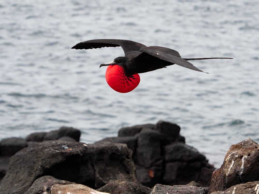 This was a special day. We visited North Seymour Island, the only place where magnificent frigatebirds and blue-footed boobies both live, and it was breeding season! We got to see male frigatebirds showing off their red gular pouches to attract mates, and blue-footed boobies doing their sky-pointing courtship dance!
