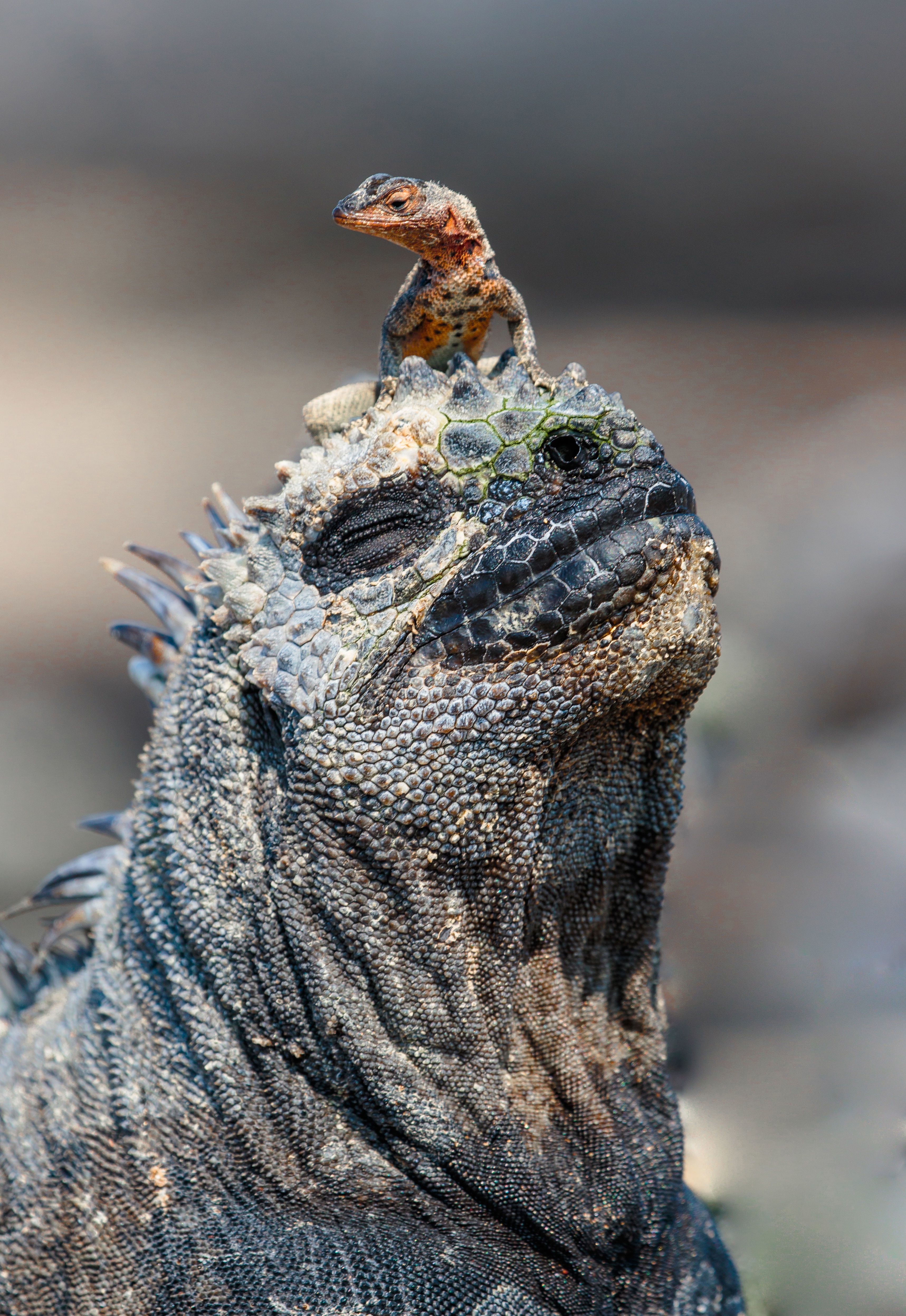 Today was our first full day of exploration around the enchanted Galapagos. The sea was very calm, and the morning was sunny and warm. We arrived early to visit Seymour Island. In this very special place, frigatebirds mate year round and boobies reproduce at this time of year. Seymour is an uplifted area. The flat terrain is covered by forests of incense trees and opuntia cacti. The ecosystem is ideal for nesting. We disembarked on the lava rocks to walk along a trail full of seabirds and sea lions. Many seabirds and reptiles inhabit this spot, such as the swallow-tailed gulls that are endemic to Galapagos. Both marine and land iguanas basked under the sun or feed on algae or plants.