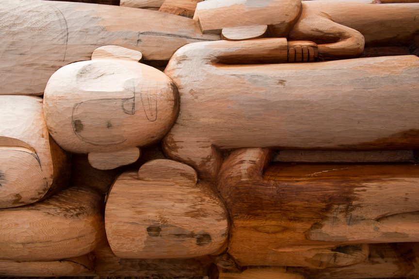 Later, we arrived at the home of Christian White, a Haida artist, who carves metal, poles, and canoes. He explained the significance of the pole in front of his longhouse that he carved for his father after he passed away in 1995. He then took us inside the workshop that housed a full sized pole and multiple canoes.