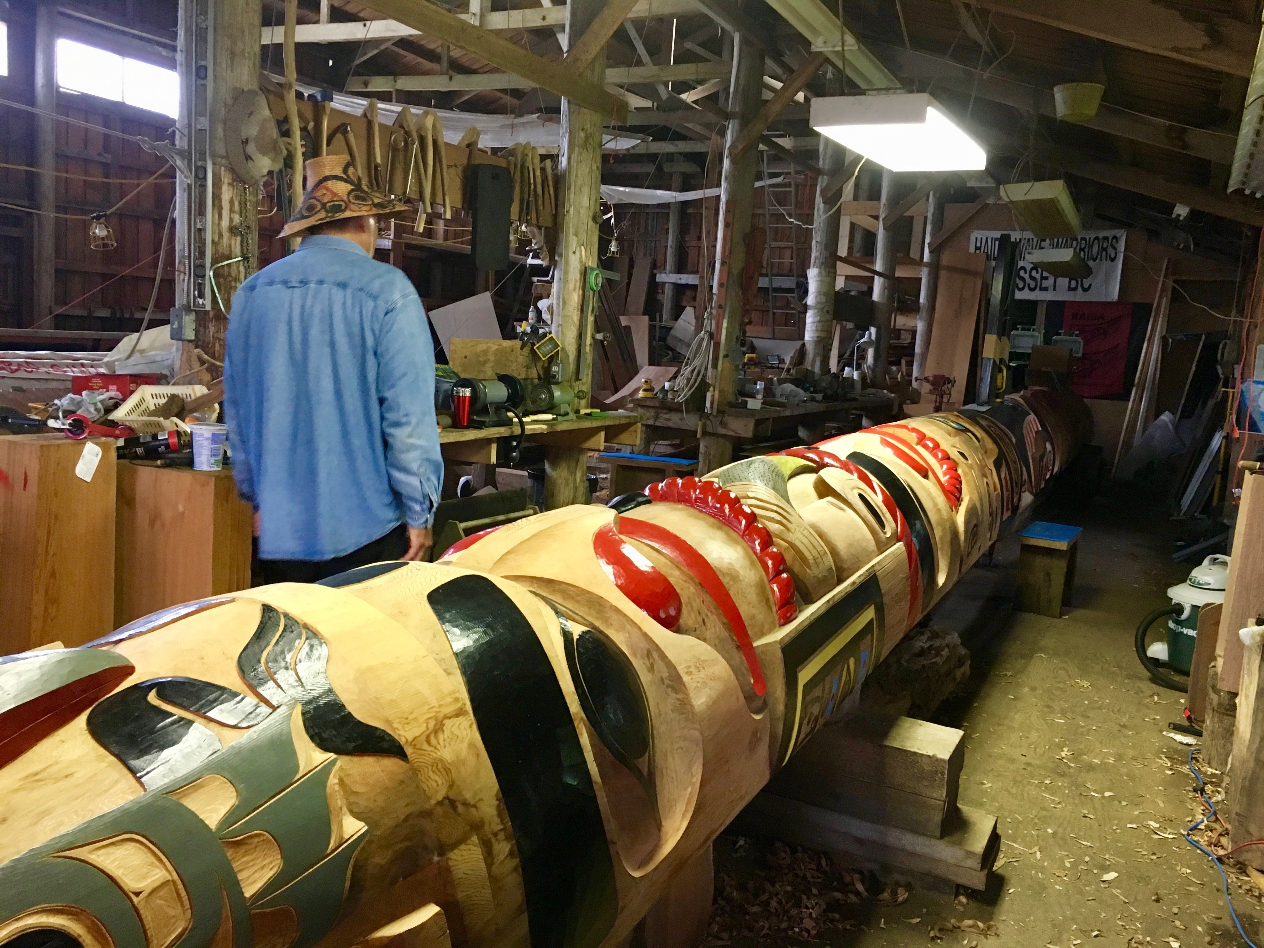 White spoke to us at length about Haida history and how, despite years of turbulence and disrespect, their culture still thrives. He told stories that have been passed down from generation to generation, and he invited us into his carving shed where his latest totem pole was in the last stages of being finished.