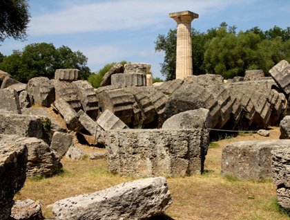 The stadium was really impressive with a 20-meter archway that led to its center.  It once could seat 50,000 people and Greeks from all around the Mediterranean would travel here every four years in order to take part in the Olympics. Colonies had been established by those in Sicily, Italy, France, Spain, the coast of today’s Turkey, the Black sea; they stood like frogs around a lake, said Plato! With this very important religious and athletic event the Greeks united and honored their city-state families. The prize for the games was nothing but an olive wreath—it was the glory that mattered and not the gold!
