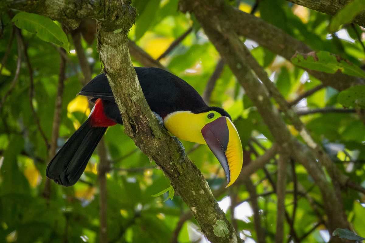 During our outings, great sightings rewarded us with scarlet macaws, yellow-throated toucans, great curassows, howler and spider monkey (on the same branch), snakes, Jesus Christ lizards, land crabs, and beautiful giant fig, and caobilla trees. We finished our first day in the most amazing way, a bright red, and yellow sunset settling behind the Pacific Ocean.