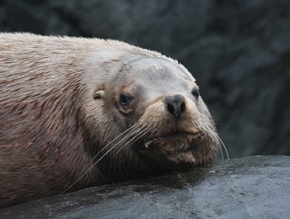 We moved on to the Inian Islands and were soon out exploring in our small boats. The Inians, at the leading edge of Icy Strait, are home to lots of marine life. We found sea otters diving ‘mid the kelp fronds. We also saw Steller sea lions patrolling the water, gliding by with grace, and reacting to our boats with alternating bluster and timidity. In one area the water was full of ‘lions, swimming around us in squadrons. Nearby a humpback whale steadily patrolled the current line. Elsewhere, some found killer whales! These impressive creatures, though common on the Northwest Coast, are unpredictable, so every sighting is a lucky one. A few of us enjoyed strikingly close views of these beautiful – though sometimes imposing – sea mammals. Rich waters here provide food for land mammals as well. Returning to the ship, some of us found a brown bear feeding on the beach. Bears are abundant on huge Chichagof Island, but none of us had ever seen a bear on the Inians.