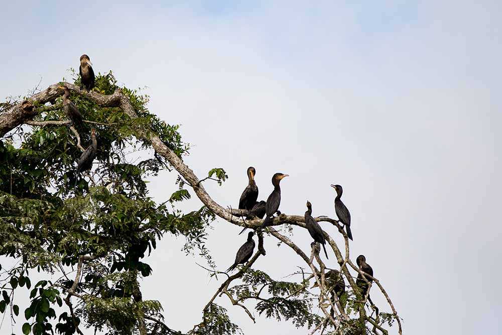 We started early in the morning, our skiff exploration along the banks of the Pacaya River. As we started we spotted great egrets and neo tropic cormorants, all of them trying to find their morning meal. In the tall kapok trees we spotted the iconic horned screamer making their typical loud sounds along with the popular black collared hawk.