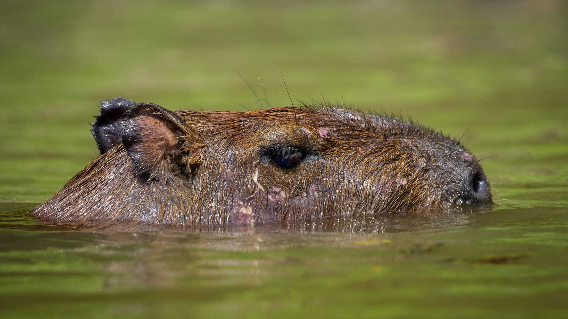 After lunch, we continued exploring a little bit more inside Pacaya River. A capybara was seen so closed to the river land. This huge rodent was hiding under several fallen trees and gave us enough time for shooting.
