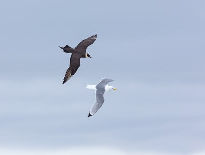 As we were dropping anchor and getting ready to start our afternoon Zodiac cruise we spotted a polar bear on one of the Andøyane (Duck) islands. The bear was raiding eider nests, which is not uncommon as sea ice diminishes, forcing bears to find food in other places. Since the polar bear was on land, we chose not to stress it more, so we did Zodiac cruises around the neighboring islands. We found some walrus hauled out on sea ice, and some in the sea swimming around the Zodiacs. Together with bearded seal and birds (king eider) this was a great Zodiac cruise. This great day ended with the ship cruising out from this beautiful fjord with a spectacular view of the surrounding mountains.