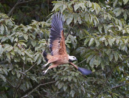 Here, in the Amazon Rainforest, every minute is important: full of bird sightings and new scenic views of the forest and rivers. Our daily activities started early with a pre-breakfast skiff ride exploring Pahuachiro Caño. (Here in the Amazon region the small rivers tributaries of the larger ones are known as Caños.) These Caños are the best paces for observation of wildlife, especially the elegant black collared hawk. The number of birds and the dense green forest are mind-boggling!