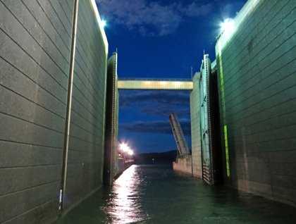 In the afternoon we are all on deck for our passage through the lock at Lower Monumental Dam—all of us that is, except for those who choose the interesting experience of going through the lock in an expedition landing craft! At 1830 hours we reach the confluence of the Snake and Columbia Rivers and steam ahead on the Great River of the West.