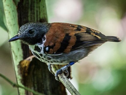 The morning walks and boat cruises along the island’s edge were all very successful. We spotted American crocodiles basking on the muddy beaches, loud mantled howler monkeys, large-billed chestnut-mandibled and keel-billed toucans in the forest canopy, and poison-dart frogs, a green parrot snake, tinamous and Central American agoutis on the forest floor.