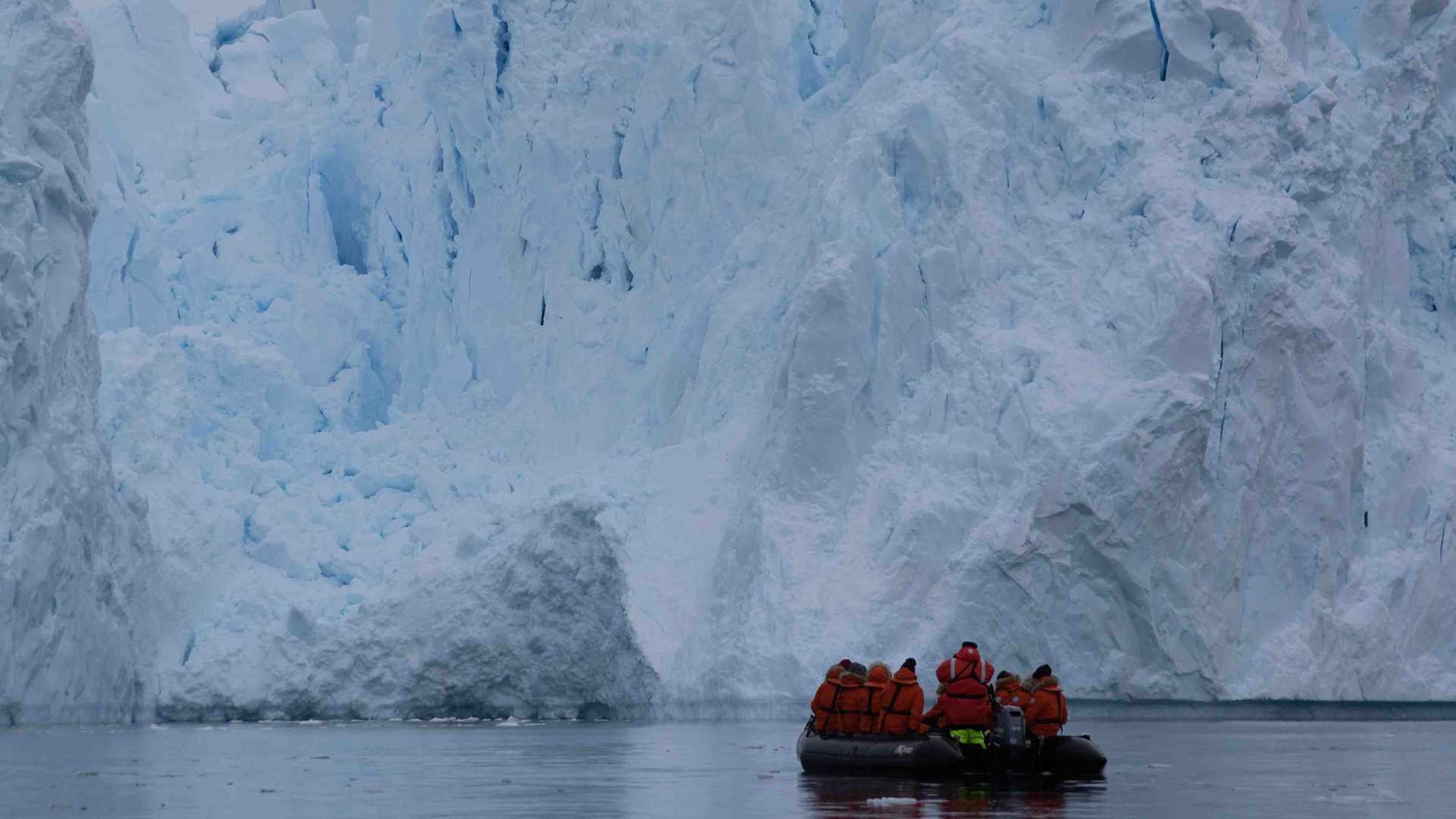 An early wake-up call alerted us to what awaited outside for our blurry eyes. Mugs of coffee were gathered as people moved to viewpoints around the ship, which had been in the breezy, southern part of the Gerlache Strait earlier. Now it was passing through the Ferguson Channel, one of the entrances between various islands ending in the bay called Paradise Harbor, a name given by 19th-century whalers because it is protected from winds in almost every direction. That was the case when we finally got into the main part of the bay. High mountains and glaciers surrounded the landscape with masses of ice flowing down the steep sides or hanging on the ridges and peaks.