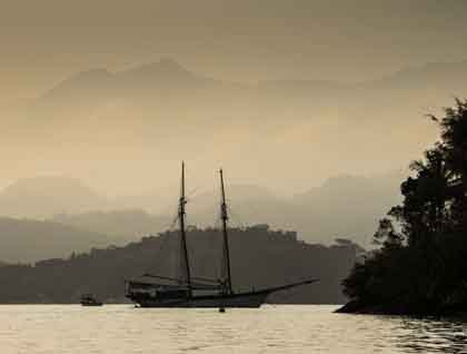 The shallow bay was initially chosen because it afforded a measure of protection to the local carrying trade of the Portuguese who used the port of Paraty to export gold and diamonds from their mines in the hinterland of Minais Gerais up the coast to Rio de Janeiro for onward transfer to Lisbon. Especially evocative of a world we have lost is a restored segment of the Estrada Real, the former highway linking the port with the inland mines. The seventeenth-century road surface is wonderfully preserved and the trail affords magnificent views of the mountains, rain forest, and the ocean. Brightly-colored birds, of which the red-necked tanager proved a favorite, along with butterflies that were plentiful, especially in the vicinity of Poço de Tarzan, a magnificent waterfall with associated pools that were popular with locals relaxing on the weekend. A relaxing afternoon on the beach or a chance to spend time in the stylish local cafés rounded off a relaxing but interesting day.