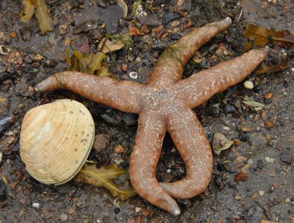 Our afternoon destination was Basket Bay on Chichagof Island. Basket Bay was named by employees of the Alaska Oil and Guano Company in 1900. The Tlingit Indian name “Kook Bay” was published in 1899 by the U.S. Coast and Geodetic Survey. We boarded inflatable boats for tours of the beautiful scenery that includes a limestone arch and grotto, complete with drooping temperate rain forest vegetation all around. Chum salmon were migrating upstream. We learned from our friendly shipboard geologist Al Trujillo that this limestone rock now present in Southeast Alaska was originally formed in shallow, tropical seas thousands of miles away about 300 million years ago. These rocks, which are part of the Alexander Terrane, have subsequently been transported by plate tectonic processes and pushed up against the edge of the continent in what would later become Alaska. A piece of limestone that contained colonial coral fossils was also found.