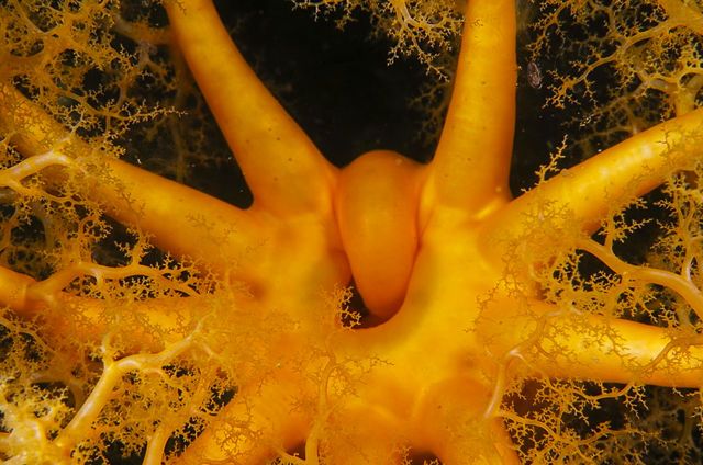 We enjoyed a great day today exploring the Eastern shore of Chichagof Island, one of the largest of the Alexander Archipelago and the first of the famous “ABC’s”. The National Geographic Sea Lion started the day at anchor in the small and picturesque Pavlof Harbor and we divided to explore it by kayak, foot and, in my case, by SCUBA diving. Those that decided to go kayaking reported having had a very nice time paddling in the calm waters and even able to see all kinds of marine life under their craft. Indeed, many marine creatures call Pavlof Harbor home, as Amy Malkoski and I were able to see firsthand while diving there this morning. We delighted by the sheer numbers and beauty of giant plumose anemones that completely covered the rocks, numerous horse crabs, giant sea cucumbers, rainbow sea stars and hooded nudibranchs. Dusky and copper rockfishes swam timidly around the much larger anemones, while red and orange sea cucumbers constantly fed by sucking their own feeding appendages one at the time, making for a great video that everyone on board got to see.