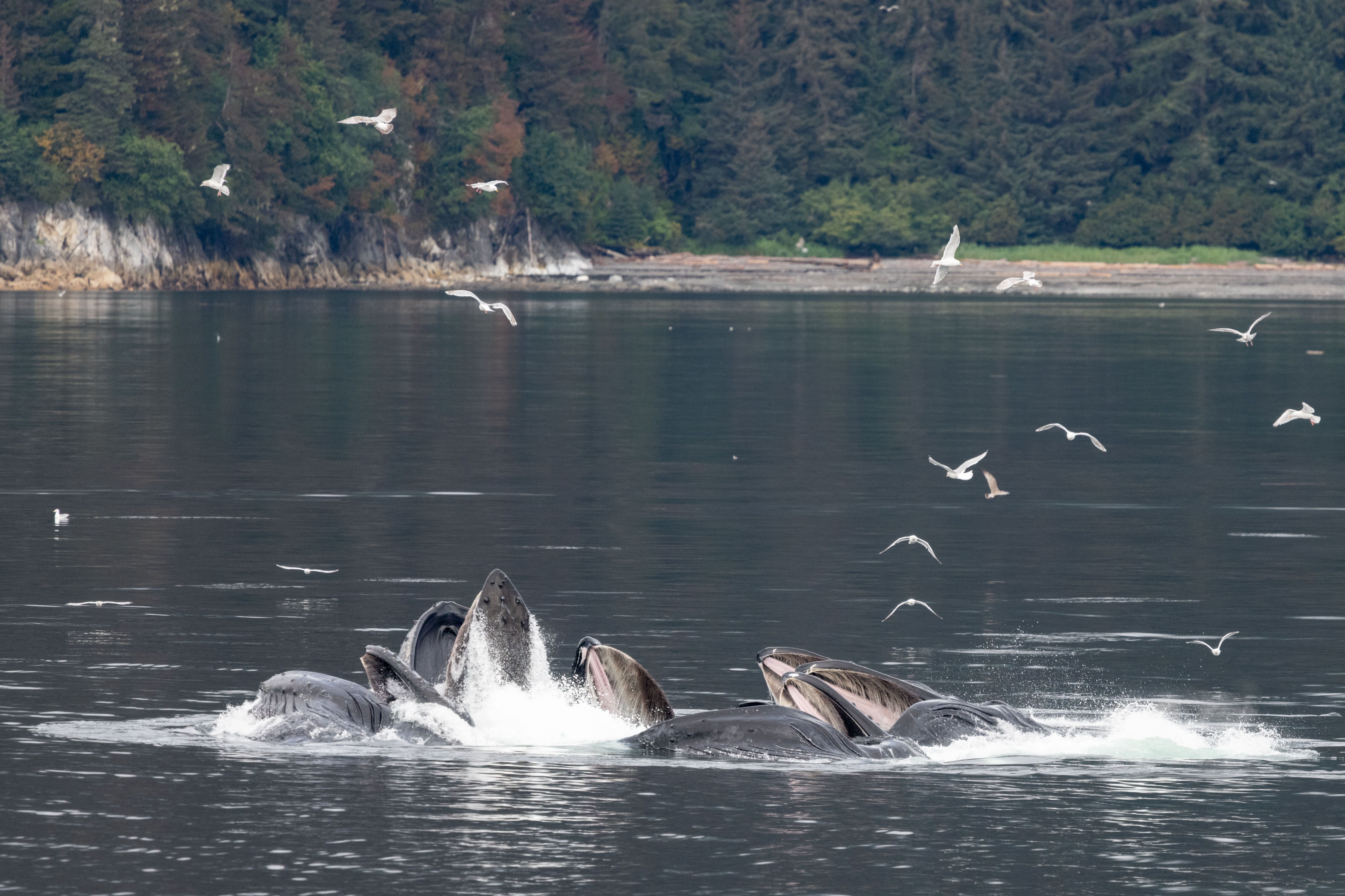 I know that you are probably thinking nothing could make this day any better. Alas, this is Lindblad, and during the afternoon, we cruised the area in search of humpback whales. A few hours into our search, we found a relatively fast group of bubble-net feeding whales. With their surface feeding visible from the bow, naturalists and guests alike were shouting for joy. Later in the evening, we identified four of the six whales we sighted, learning that most of them have been sighted migrating to Hawaii for the winter. The evening closed with one final recap, our guest slide show, and conversations into the twilight. I could not think of a better send off from our time here in Southeast Alaska. Until next time!