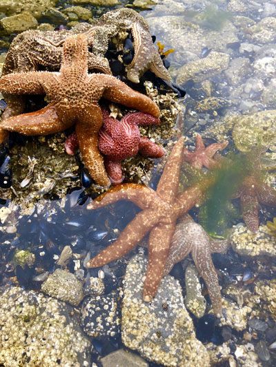 The voyage continues. After navigating through the Lynn Canal and then west to where the Cross Sound and the Gulf of Alaska meet, we anchored in Granite Cove, where our adventures began. In true Lindblad form, we rode Zodiacs from National Geographic Sea Bird to George Island, a former outpost during World War II. Just as we stepped onto the rocky shore, the clouds parted, and sunshine beamed upon us as if to welcome our exploration. Groups set out by foot and by kayak to take in the sights. We found a multitude of colorful lichens in the forest, seaweed on the beach, and sea stars in the tidal zones. No matter where we explored, we were bound to get great photos. Back on board, there was a buzz of chatter during lunch as we compared notes on what we saw. A quick repositioning of National Geographic Sea Bird brought us to “the Hobbit Hole” in the Inian Islands archipelago. Here, the color of the water is a striking teal. It’s the only entrance for the Pacific Ocean to pour nutrient-rich waters into the northern reaches of Southeast Alaska, so the chances of seeing marine mammals and seabirds are good. The afternoon Zodiac runs did not disappoint. We saw sea otters, harbor seals, rhinoceros auklets, and bald eagles…oh my! As we headed back to the ship in our Zodiacs, a light, cool drizzle began and gave way to a brilliant rainbow, uninterrupted by the buildings, traffic, or crowds we’re accustomed to. Lucky for us, we have a couple more days for moments like this one on our floating home.
