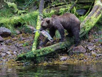 Another day here in the temperate rain forest of Southeast Alaska once again brought... sunny skies. An entire week of sunshine with no rain is incredibly unusual for here, but we certainly enjoyed it. We once again hiked, kayaked, and did scenic cruising. Again, we were surrounded by tall peaks, thick forests, and abundant wildlife. Dall’s porpoises played off the bow, bald eagles flew overhead, and red paintbrush flowers carpeted the floor. Our certain highlight of the day, however, was the bear action in the morning!