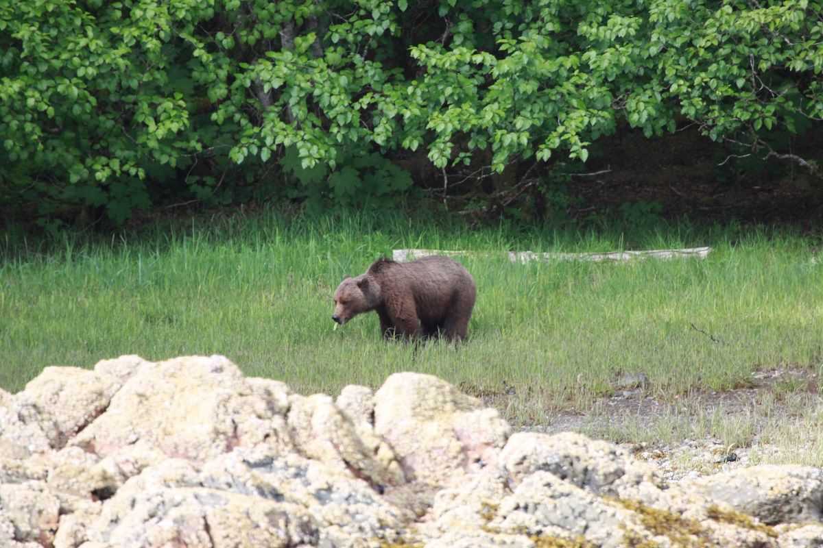 We scrambled up rocks to reach a view across sedge meadows and still water studded by trumpeter swans and goldeneyes to see high, jagged peaks. In the meadows, sedges were accompanied by violets, marigolds, and, in the boggier places, even some bog cranberry, round-leaved sundew, and buckbean. Walking on animal trails is a humbling experience. How do those deer and bears and beavers scramble and amble up such varied terrain? We held back branches for each other, helped each other over boot-sucking mud, and handed each other across rivers. Kayakers and some hikers had the opportunity to watch a brown bear grazing on sedges by the shore. It was glorious.