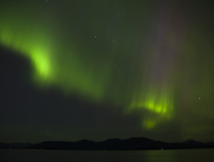 But wait, there’s more! Just as you finish reading this expedition report, and just as I thought I was finished writing it (at midnight), word came over the radio, “We’ve got northern lights.” Indeed we did, and by the time I made it to the bow, already the recognizable green curtains were taking shape. I ran back downstairs, woke up the other photo instructors, sent word for our expedition leader, and we announced into every guest’s cabin, “wake up sleepy-heads, we’ve got northern lights.” What ensued was three hours of sheer awe, filled with intermittent laughter at the incredible spectacle overhead. Yes, we are lucky, and this trip has been more than any of us could have anticipated. We’ve had a spirit bear, we’ve been surrounded by 100-150 humpbacks, and now we are witness to one of the most impressive Northern Lights displays anyone aboard has ever seen. This has been undoubtedly a remarkable journey.