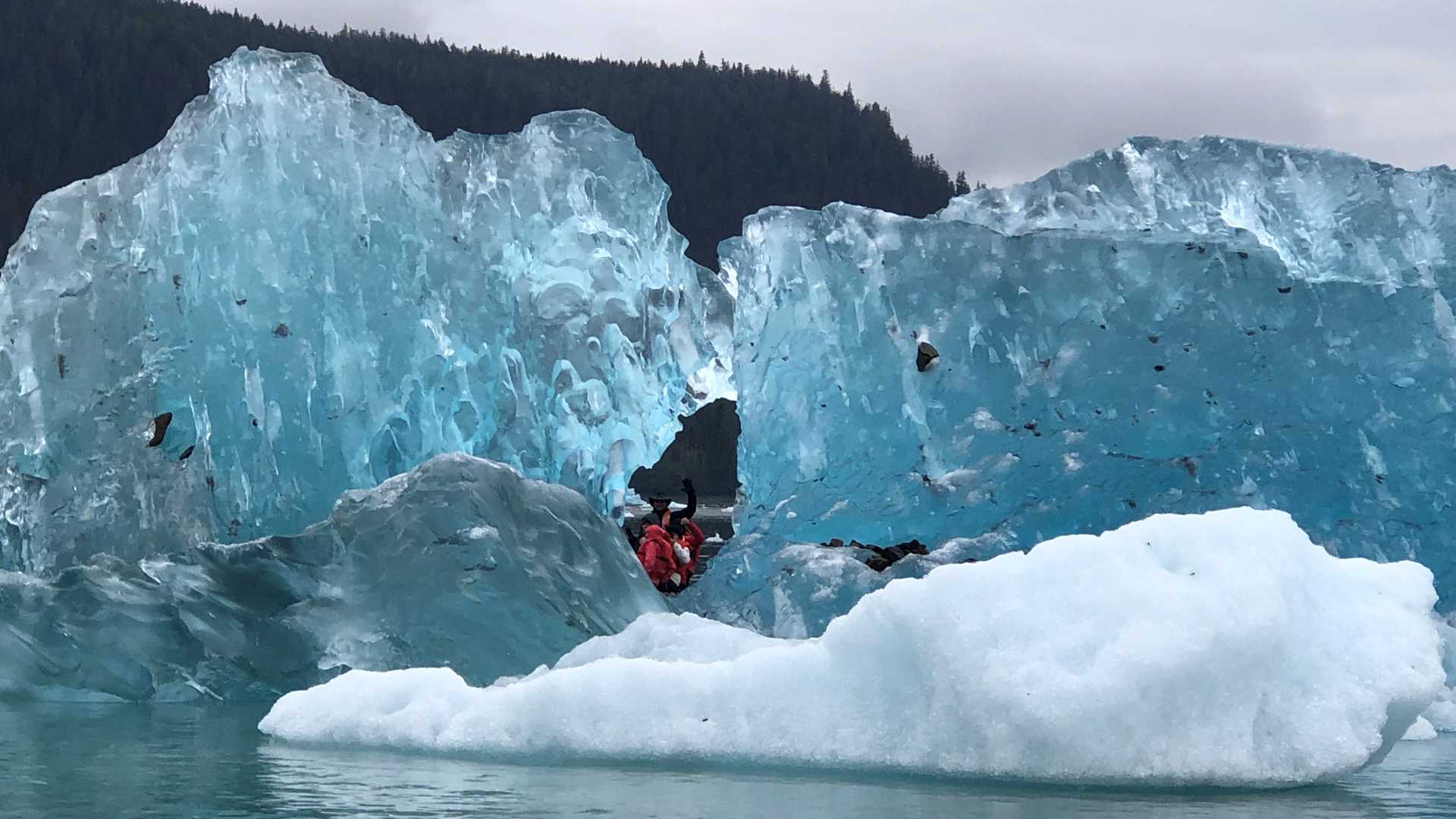 Ice! Cold, blue, beautiful ice. As we arrived at LeConte Bay near Petersburg, the presence of floating ice indicated that we were in the proximity of a tidewater glacier. In the morning before breakfast, we launched Zodiacs to cruise through the icebergs. The clear blue color of many of the icebergs made them look like precious gemstones, and some even appeared to have been sculpted by the hand of an expert ice-carver. We were also able to get a close-up look at glacial ice when we landed on shore to admire large icebergs that had been stranded during the previous high tide. In the afternoon, National Geographic Quest repositioned to the fishing community of Petersburg, Alaska. We had multiple options today, including various hikes in the temperate rainforest and to a bog (muskeg), Zodiac cruises to observe fishing vessels in the harbor, flightseeing over the Stikine Icefield, and a bicycle tour through the backstreets of Petersburg. In addition, there was time to stroll into town to observe Alaskan life. After a traditional fresh crab dinner, the sun slowly set, highlighting the clouds in the west and the tall peaks to the east. All in all, it was a perfect ending to a magical Alaskan day.