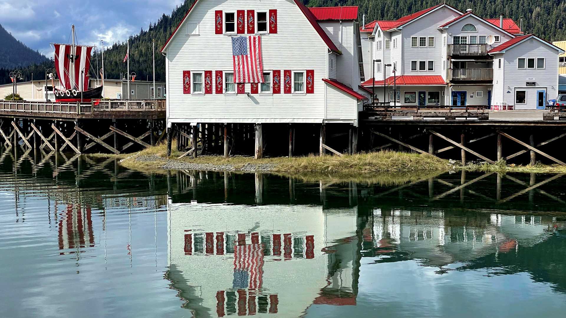 Petersburg is nestled between the ocean and the steep Coastal Mountain Range, which also creates the border with neighboring Canada. About 3,000 people call Petersburg home. Many of them are of Norwegian descent thanks to town founder, Peter Buschmann, a Norwegian businessman who established the commercial fishing and canning industry in the area in 1898. Around town, brightly painted homes extend out over the harbors on stilts, and Norwegian flags fly alongside the stars and stripes. If it weren’t for the Indigenous Alaskan totem poles, one might think they were transported to the fjords of Norway!
