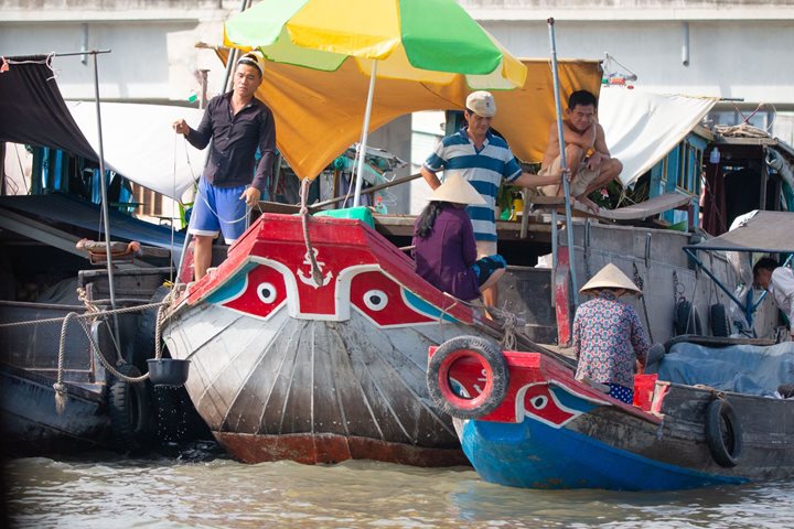 We awake at 6 a.m. as our vessel comes alongside her sister ship Jayavarman at the port just north of city centre, where a number of river vessels are already moored. After breakfast, we board a parade of “cyclopousses”, powered by well-muscled, and mostly elderly, drivers. Making our way through heavy traffic, we come within inches of colliding with the steady stream of Lexus and Range Rover SUVs, delivery trucks, motor scooters, and tuk-tuks—ubiquitous motorcycle-powered mini-taxis patterned after those that have ruled the streets of Bangkok for decades.