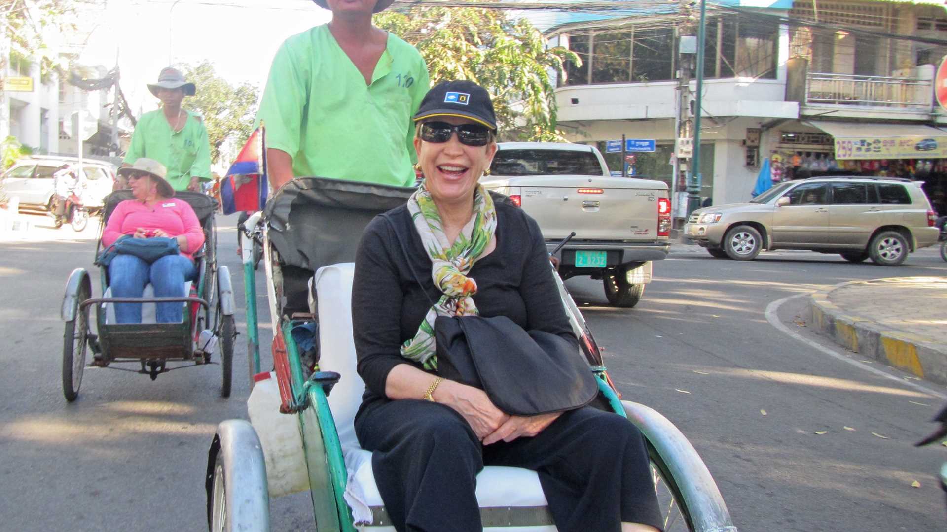 We commenced our day cruising into the Cambodia’s capital city, Phnom Penh. Nearly three million people live in and around this bustling city. After our usual hearty breakfast we started the day by joining in the seemingly chaotic traffic as a passenger on a modified bicycle called a cyclo. Being immersed in the morning traffic chaos of this bustling tropical city was an experience to remember.