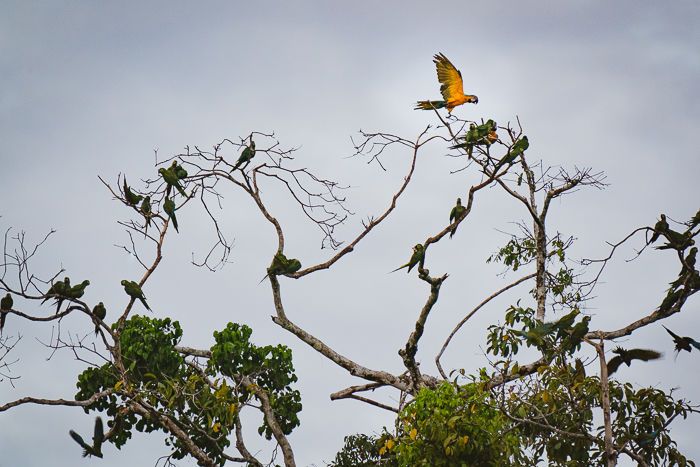 The sun was rising this morning as National Geographic Quest docked in the Port of Golfito. The Standard Fruit Company exported its banana production through the port until the mid-1980s. After this, the company formally began operations in Costa Rica. Ship handling was the main interest of the site, so very little land was used for settlement. Much of the original forest was left in place to guarantee not only the water supply, but also for the delight of those who lived here. After clearing Customs this morning, we went out to explore the mangroves of this beautiful place. Some guests enjoyed Zodiac tours. Other guests desired more exercise, so they observed the mangroves while kayaking. After repositioning the boat inside Golfo Dulce in the afternoon, we explored the trails of Dolphin Quest, a private reserve connected to Piedras Blancas National Park. We observed scarlet macaws, white-faced capuchins, white-lipped peccaries, and several species of small amphibians and reptiles. We were pleased to spot a tree frog called Hyla rosembergii , a species rarely found close to the ground, especially during the day. The day was a success, starting with a beautiful morning and ending with a fantastic sunset.