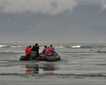 An early start saw our arrival on the sandy beach that fronts the settlement of Pond Inlet on the northern coast of Baffin Island. The warm welcome from members of the local community offset the somewhat inclement weather. One group went on an engaging walk with a local guide along the beach to explore the remains of a Thule settlement. Boulders of multi-patterned and coloured gneiss and other ancient rock types have been washed out of the huge terminal moraine by the action of the waves, deposited at the end of the Ice Age, and were strewn along the sand. Impressive examples of solifluxion were also evident with deposits of sediment slipping down onto the beach fuelled by excessive water runoff.