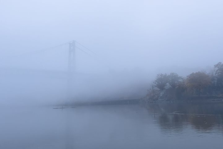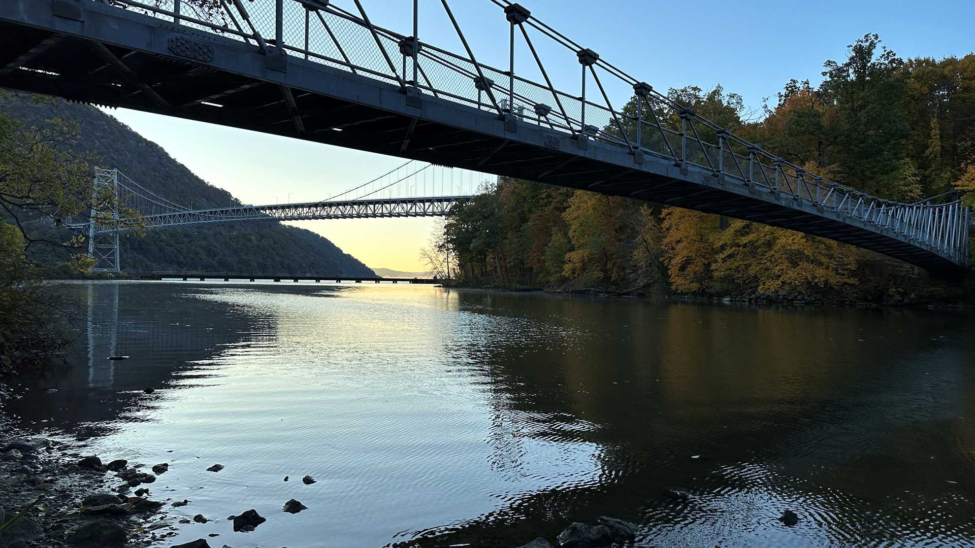 Our day began early near the Bear Mountain Bridge, also known as the Purple Heart Veterans Memorial Bridge. Kayaking, hiking, and Zodiac rides were on offer. The morning light hit the water and reflected the bridges, the colorful fall leaves, and the paddlers in kayaks. Adventurous hikers made their way up to and across the Bear Mountain Bridge to look down upon the Hudson River that has been at the core of our journey.