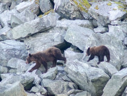 Overnight, National Geographic Sea Bird passed north through Chatham Strait, west through Icy Strait and Cross Sound, and finally south into Port Althorp, where we dropped our anchor off of the northwestern corner of Chichagof Island. Our usual range of exceptional options awaited us – kayaking, expedition landing craft and a variety of hikes. With plenty of time to explore, most of us chose two modes of exploration. What did we find? All types of tracks – brown bears, Sitka black-tailed deer, mink, gulls; birds – bald eagles, a great-blue heron, a belted kingfisher, a variety of gulls; sea critters – harbor seals, sea otters and countless thousands of pink salmon. The sun shone and the morning was absolutely delightful.