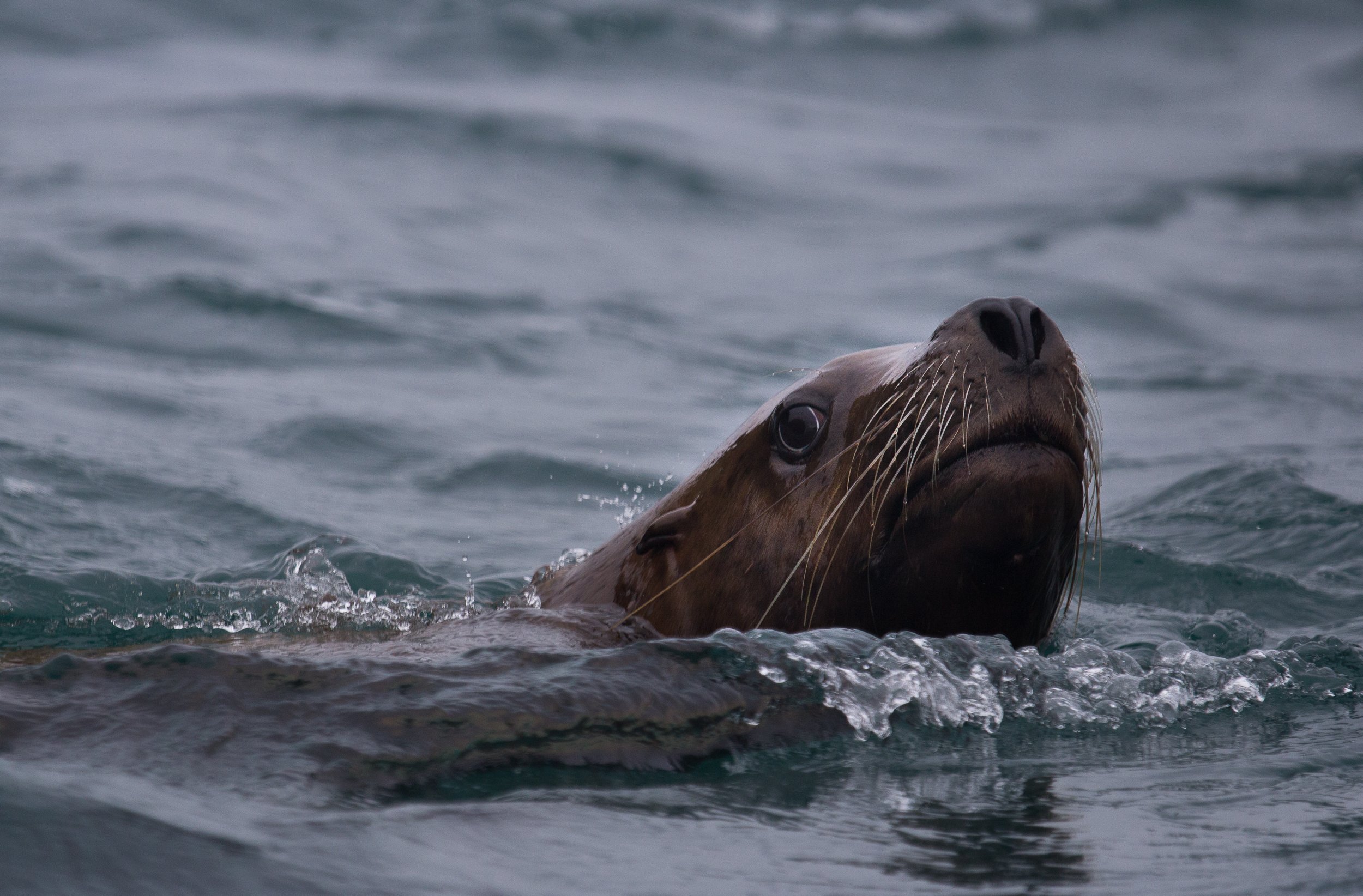 For the afternoon the ship repositioned to the Inian Islands, an area well known for abundant wildlife. The strong current system from the Pacific Ocean floods and ebbs tide through the tight bottleneck the island chain provides. The exceptionally strong flow carries members of the plankton community, fish, and other marine organisms literally to the mouth of the larger animals in this ecosystem. Naturalists loaded into expedition landing crafts and prepared for an afternoon full of cruising, searching for wildlife and spectacular views. They were not disappointed – within one and a half hours guests saw Steller sea lions, humpback whales, sea otters, bald eagles, jumping salmon, and an array of birds.