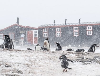 The National Geographic Explorer was docked in the shorefast ice of Port Lockroy - that is, sea ice left over from last winter and still contiguous with the land.  One of our activities of the morning involved stepping off the ship for a stroll over the sea ice, leaning into the howling wind.  We rotated over to Jougla Point, where Antarctic shags and gentoo penguins ignored the blowing snow to carry on with their breeding activities. This included penguins stealing stones from their neighbor’s nests while their own nests were being similarly pilfered and the shags carrying nesting material to add to the nests and impress their mates.  The third stop of the circuit was Bransfield House, the restored Base A, where the collection of period artifacts shows us what life was like for men stationed in the Antarctic in the mid-twentieth century.  We hunkered down for the last Zodiac ride back to our ship.  Were we put off by the weather?  Not at all!  To the last person, we were giddy with excitement and grateful for the experience.  We had taken what Antarctica could throw at us and we emerged victorious, with stories to share with friends and family back home.