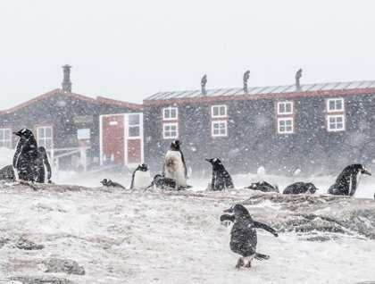 It was an Antarctic Day!  After our days of bright sunshine, brilliant vistas, and sunburned noses, we were lucky enough to see and experience another side of Antarctica.  A short run from the site of last night's festivities at the U.S. Antarctic Research Program's Palmer Station brought us to Port Lockroy, a well-protected harbor tucked into Wienke Island.  Since its discovery by the French Antarctic explorer Jean-Baptiste Charcot in 1903, it has been used by Antarctic explorers to repair their ships and by whalers to process their catch.  In 1944, the British established Base A here as part of a wartime effort under the name of Operation Tabarin (the code name Tabarin taken from a bawdy bar in Paris.)  The purpose is not altogether clear.  Following the war it became a science base used largely for atmospheric studies.  Base A was abandoned in 1962 and left to fall into ruins, but then was taken over by the U.K. Antarctic Heritage Trust and turned into an Antarctic museum and the almost-farthest-south gift shop.  Proceeds from the gift shop support the preservation of historic huts in this sector of the Antarctic.  We did our best to advance that cause!