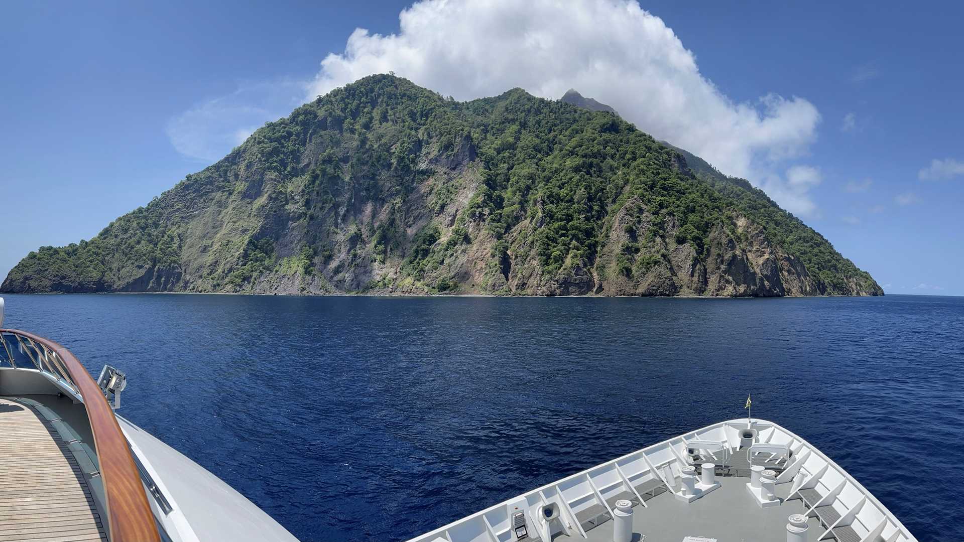 For those who preferred to stay dry during the morning, a Zodiac cruise around the volcano was offered. With the guidance of geologist John, this was a perfect on-site volcanology lesson with close views of the sulfur cone and the towering plumes. We were able to witness the formation of a scree field as it happened. As small rocks spewed out of the volcanic cone and landed on the steep, rocky slope, some of them were still fuming.